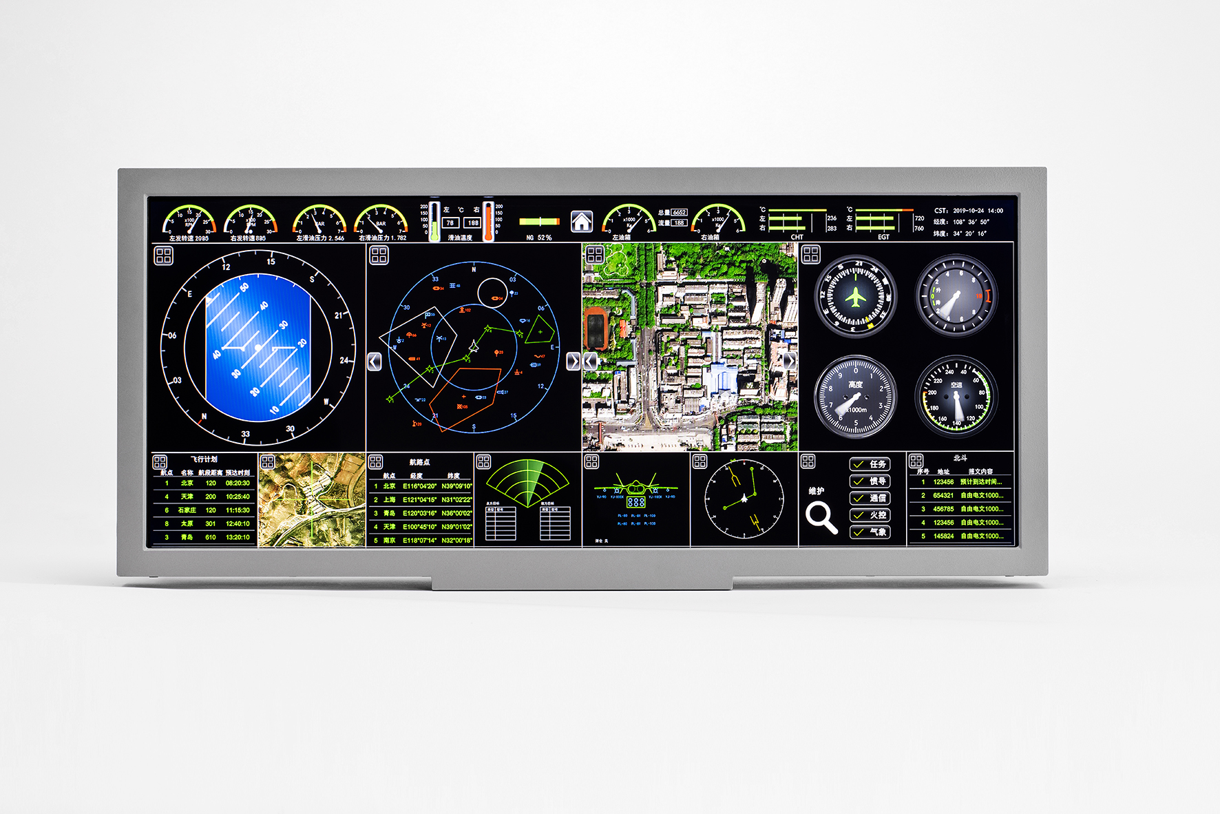 第四代多功能显示器是公司最新研制的宽屏双通道多功能显示器,采用公司自主开发的双通道独立显示技术,实现了大分辨率,采用光纤总线进行数据和视频传输。